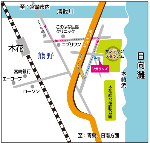 〒889-2151 宮崎県宮崎市大字熊野1910-1 TEL:0985-71-0386 宮崎方面より南バイパスを南進。 サンマリンスタジアムが左手に見えたら降り、すぐを左折、200m。 黄色と緑の外壁が目印です。ガーデンエクステリアのイラストも!