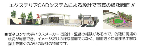 | 事業内容 | エクステリアCADシステムによる図面の作成 外構工事の施工・管理 エクステリアアルミ製品の組み立て エクステリア資材の販売 |