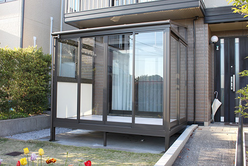 N様邸 サンクスペース: Fタイプ 1.5間×6尺 床納まり 左側面 : 高窓(2枚建) 右側面 : 土間納まり用の引戸に変更(外鍵がほしい為) ▼ビフォー