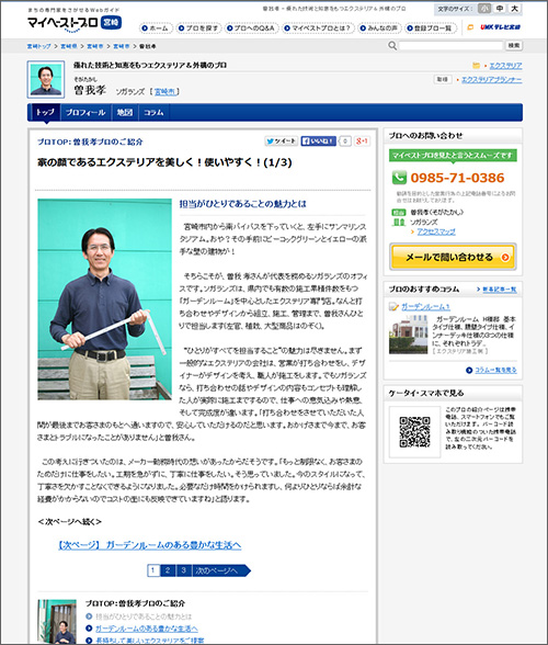 各都道府県ごとに、いろんな分野のプロフェッショナルな人を紹介するサイトの宮崎版で、エクステリアのプロで選ばれました。各都道府県のテレビ局や新聞社が運営していて、宮崎ではUMKテレビ宮崎さんが運営しています。